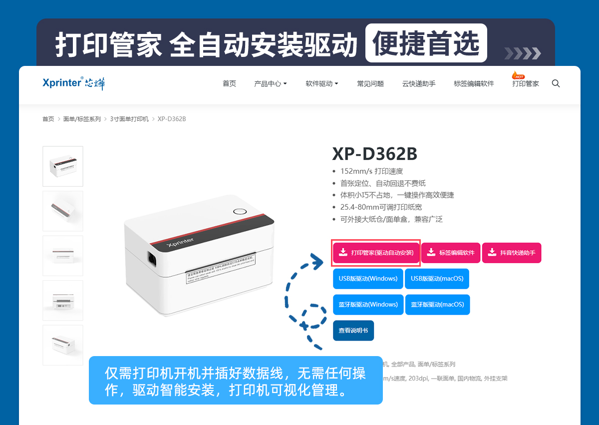 • 可外接大纸仓/面单盒,兼容广泛