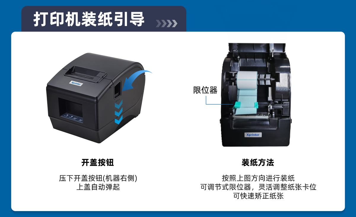 - 大纸仓,可装80mm直径纸卷