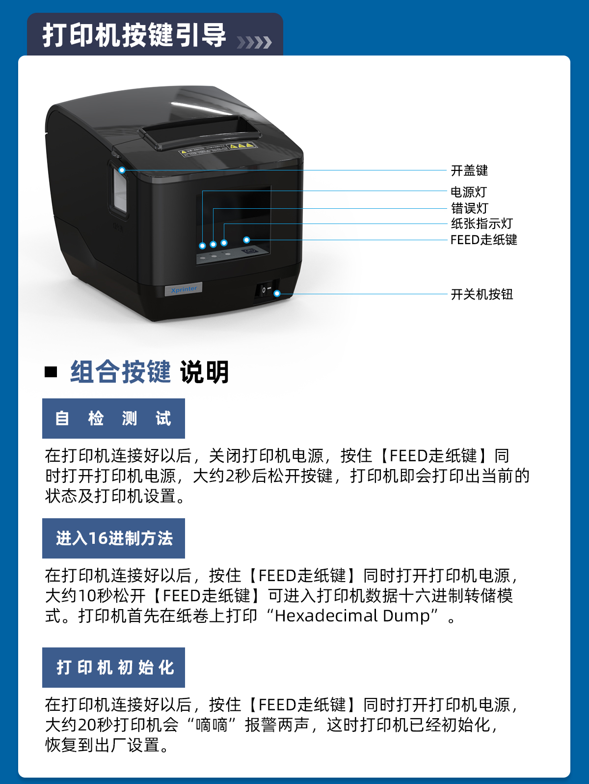 | 本网站主要提供芯烨(Xprinter)品牌商品相关软硬件使用操作服务信息,仅供参考。若因您使用的产品非芯烨品牌、非对应型号、特供或定制型号等,可能无法参照网站内教程使用,如因产品不匹配造成的问题及损失,本网站无法提供服务支持并不承担任何法律责任。 | ||