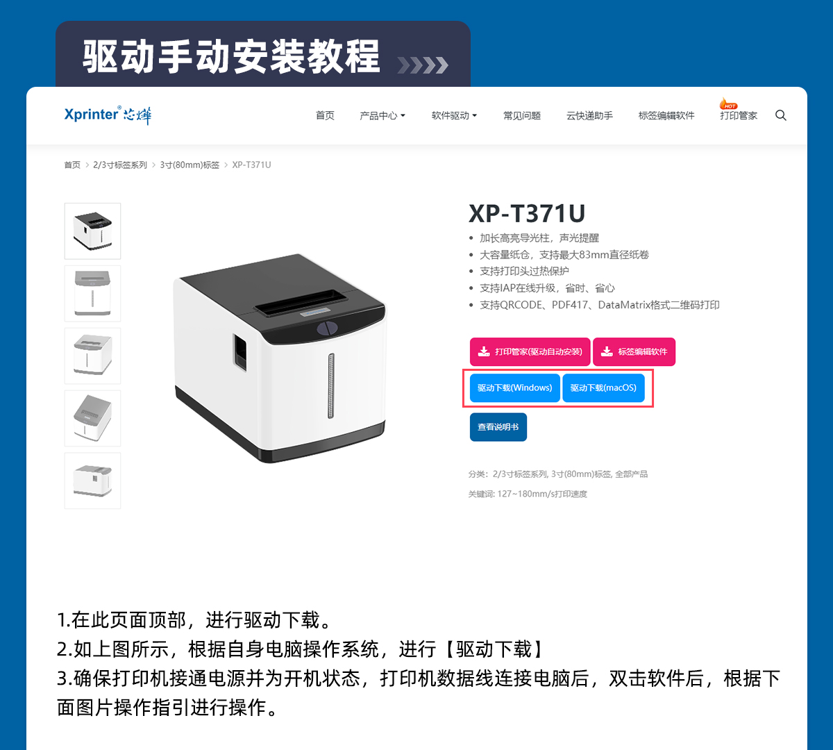 | 本网站主要提供芯烨(Xprinter)品牌商品相关软硬件使用操作服务信息,仅供参考。若因您使用的产品非芯烨品牌、非对应型号、特供或定制型号等,可能无法参照网站内教程使用,如因产品不匹配造成的问题及损失,本网站无法提供服务支持并不承担任何法律责任。 | ||